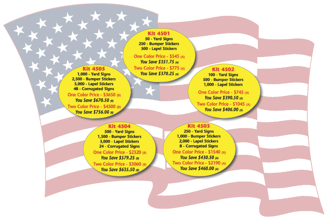 For more information on political kits please call (937)878-3080 or Email us at info@domiconeprinting.com